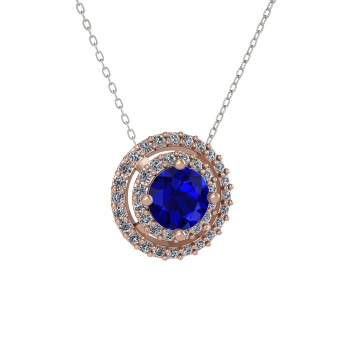 Lab safir ve pırlanta 8 ayar rose altın kolye (0.351 karat, 40 cm beyaz altın rolo zincir)