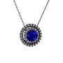 Lab safir ve pırlanta 925 ayar siyah rodyum kaplama gümüş kolye (0.351 karat, 40 cm gümüş rolo zincir)