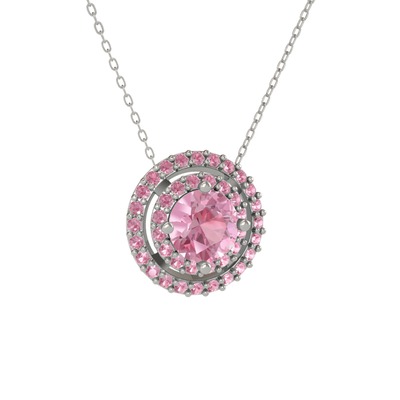 Pembe kuvars 8 ayar beyaz altın kolye (40 cm gümüş rolo zincir)
