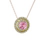 Pembe kuvars ve beyaz zirkon 14 ayar altın kolye (40 cm rose altın rolo zincir)