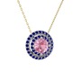 Pembe kuvars ve lab safir 14 ayar beyaz altın kolye (40 cm altın rolo zincir)