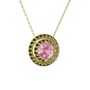 Pembe kuvars ve peridot 8 ayar altın kolye (40 cm gümüş rolo zincir)