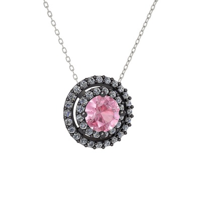 Pembe kuvars ve pırlanta 925 ayar siyah rodyum kaplama gümüş kolye (0.351 karat, 40 cm beyaz altın rolo zincir)