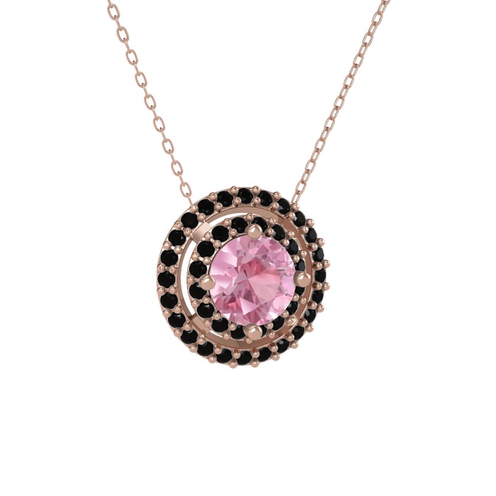 Pembe kuvars ve siyah zirkon 18 ayar rose altın kolye (40 cm rose altın rolo zincir)