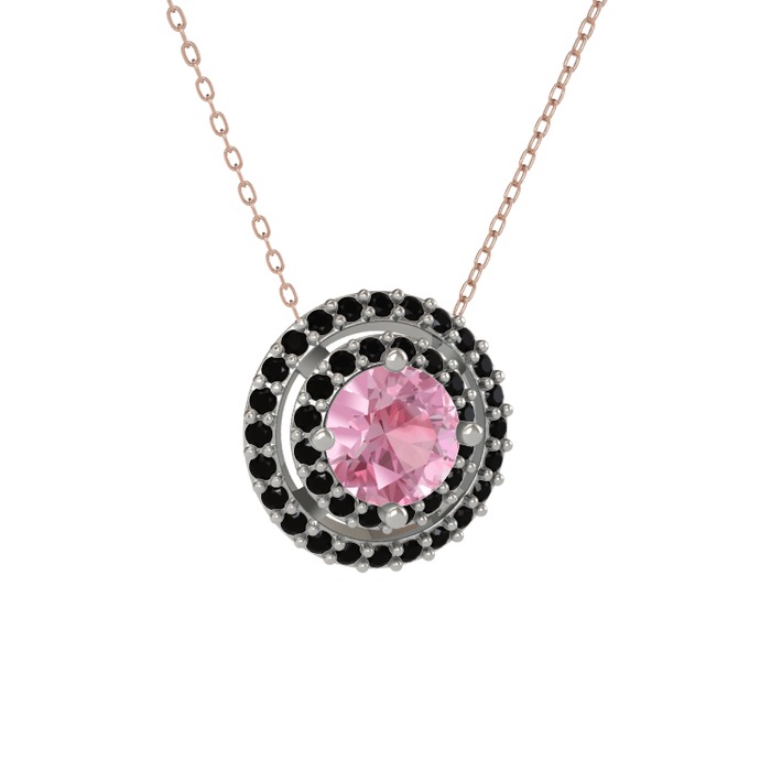 Pembe kuvars ve siyah zirkon 925 ayar gümüş kolye (40 cm gümüş rolo zincir)