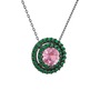 Pembe kuvars ve yeşil kuvars 925 ayar siyah rodyum kaplama gümüş kolye (40 cm gümüş rolo zincir)