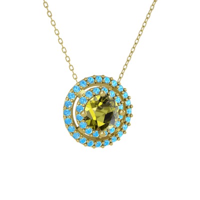 Peridot ve akuamarin 8 ayar altın kolye (40 cm altın rolo zincir)