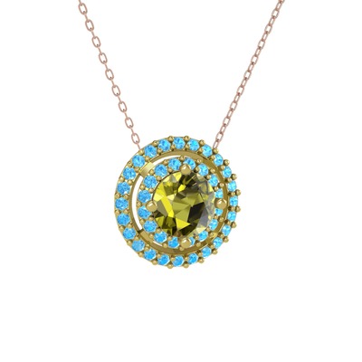 Peridot ve akuamarin 925 ayar altın kaplama gümüş kolye (40 cm rose altın rolo zincir)