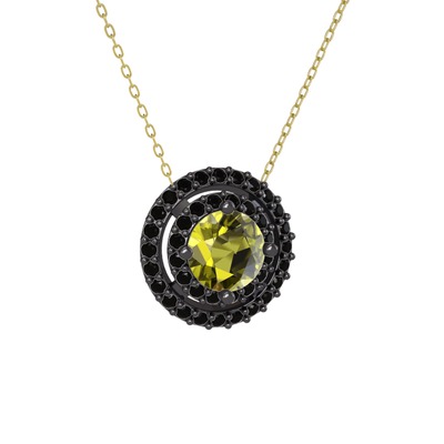 Peridot ve siyah zirkon 925 ayar siyah rodyum kaplama gümüş kolye (40 cm gümüş rolo zincir)
