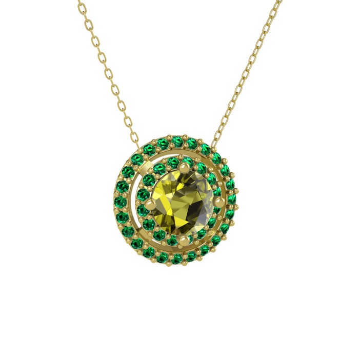 Peridot ve yeşil kuvars 18 ayar altın kolye (40 cm altın rolo zincir)