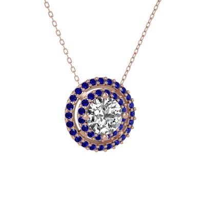 Pırlanta ve lab safir 14 ayar rose altın kolye (0.92 karat, 40 cm rose altın rolo zincir)