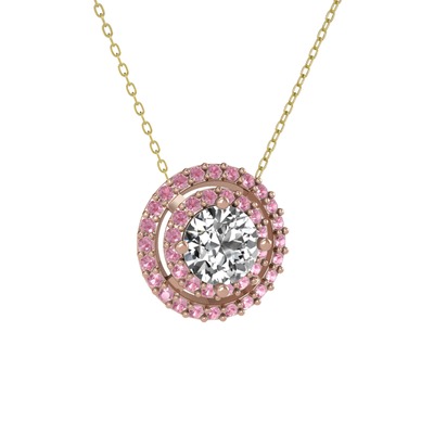 Pırlanta ve pembe kuvars 18 ayar rose altın kolye (0.92 karat, 40 cm altın rolo zincir)