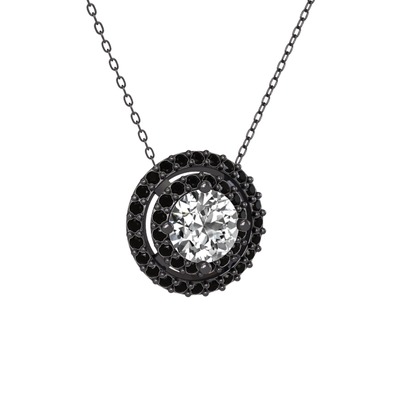 Pırlanta ve siyah zirkon 925 ayar siyah rodyum kaplama gümüş kolye (0.92 karat, 40 cm gümüş rolo zincir)
