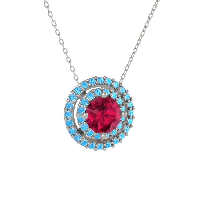 Rodolit garnet ve akuamarin 14 ayar beyaz altın kolye (40 cm beyaz altın rolo zincir)