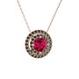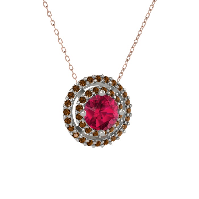 Rodolit garnet ve dumanlı kuvars 14 ayar beyaz altın kolye (40 cm rose altın rolo zincir)