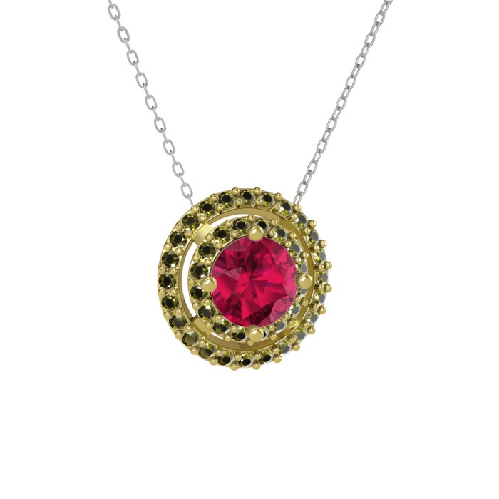 Rodolit garnet ve peridot 18 ayar altın kolye (40 cm beyaz altın rolo zincir)