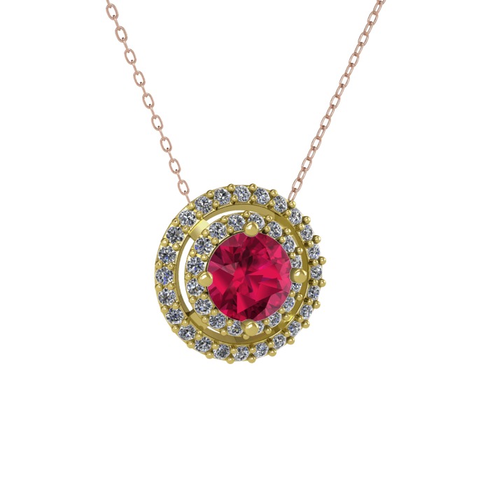 Rodolit garnet ve pırlanta 18 ayar altın kolye (0.351 karat, 40 cm rose altın rolo zincir)