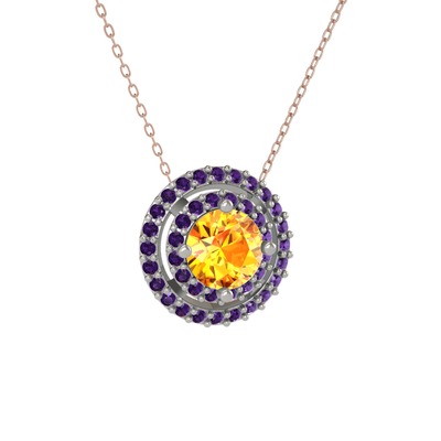 Sitrin ve ametist 925 ayar gümüş kolye (40 cm rose altın rolo zincir)