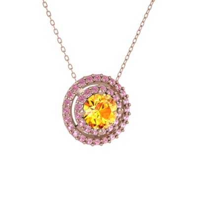 Sitrin ve pembe kuvars 14 ayar rose altın kolye (40 cm rose altın rolo zincir)