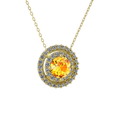 Sitrin ve pırlanta 18 ayar altın kolye (0.351 karat, 40 cm altın rolo zincir)