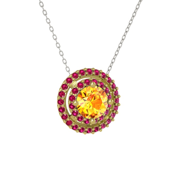 Sitrin ve rodolit garnet 925 ayar altın kaplama gümüş kolye (40 cm beyaz altın rolo zincir)
