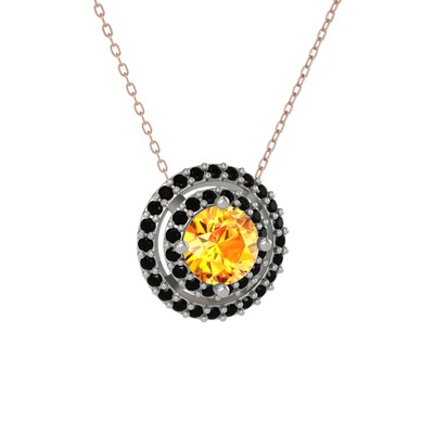 Sitrin ve siyah zirkon 14 ayar beyaz altın kolye (40 cm rose altın rolo zincir)