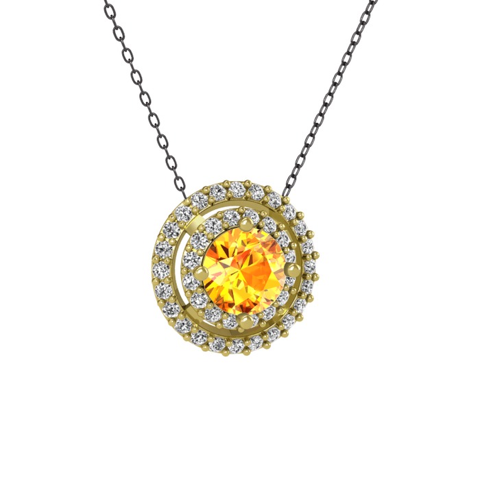 Sitrin ve swarovski 8 ayar altın kolye (40 cm gümüş rolo zincir)