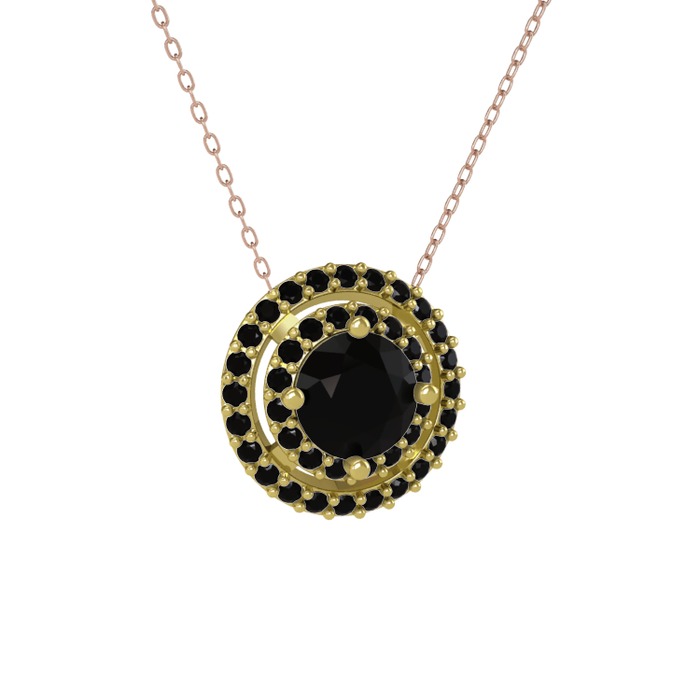 Siyah zirkon 18 ayar altın kolye (40 cm gümüş rolo zincir)