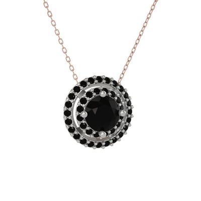 Siyah zirkon 8 ayar beyaz altın kolye (40 cm gümüş rolo zincir)