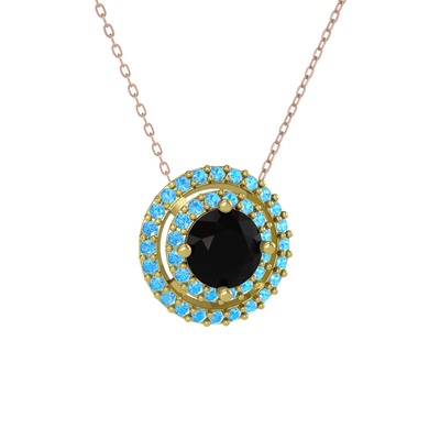 Siyah zirkon ve akuamarin 18 ayar altın kolye (40 cm gümüş rolo zincir)