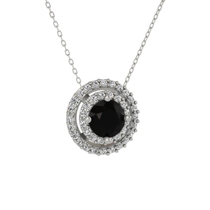Siyah zirkon ve beyaz zirkon 18 ayar beyaz altın kolye (40 cm beyaz altın rolo zincir)