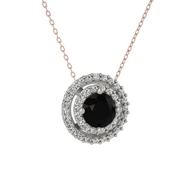 Siyah zirkon ve beyaz zirkon 925 ayar gümüş kolye (40 cm gümüş rolo zincir)