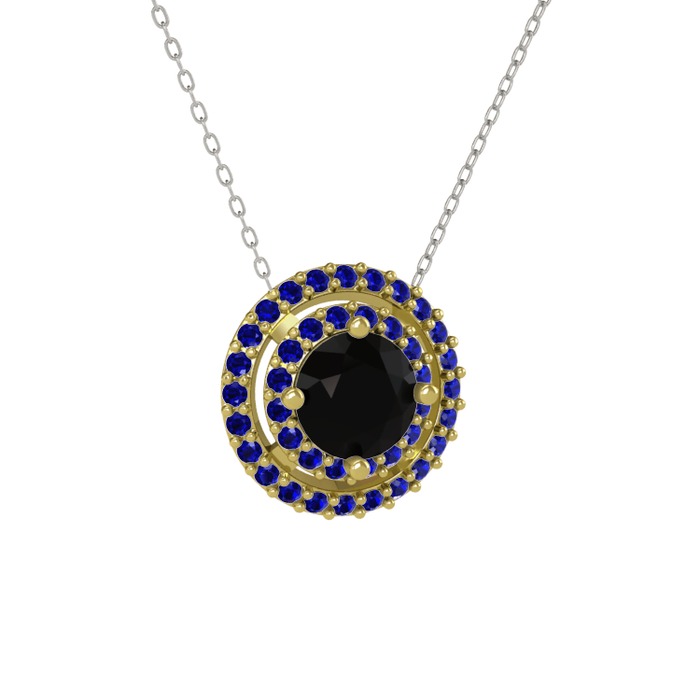 Siyah zirkon ve lab safir 8 ayar altın kolye (40 cm beyaz altın rolo zincir)