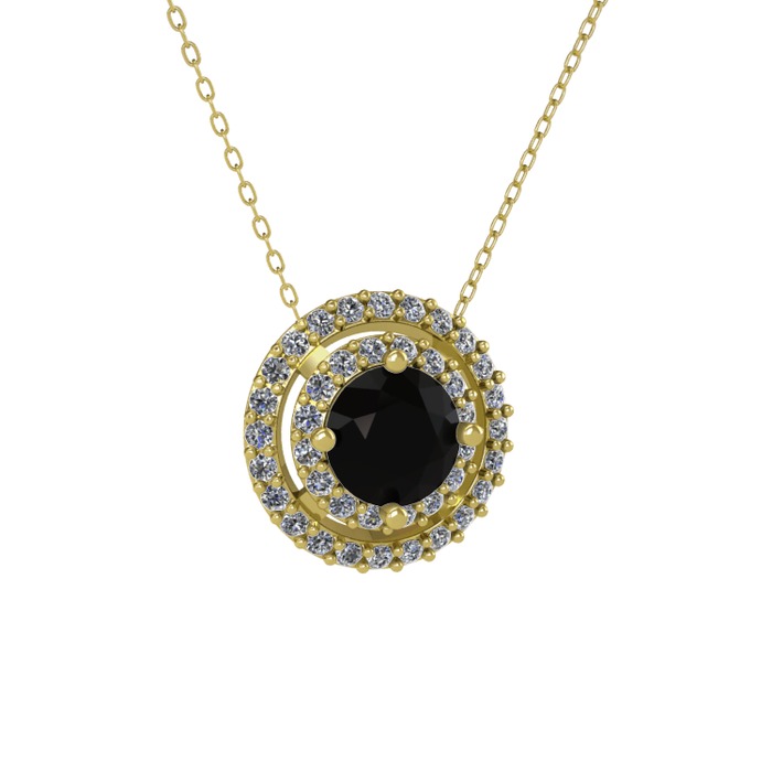 Siyah zirkon ve pırlanta 925 ayar altın kaplama gümüş kolye (0.351 karat, 40 cm altın rolo zincir)