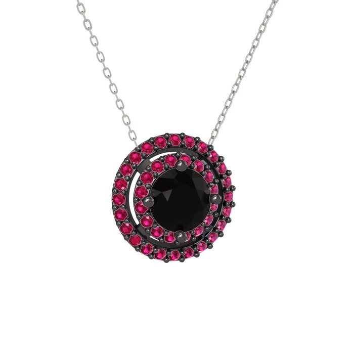 Siyah zirkon ve rodolit garnet 925 ayar siyah rodyum kaplama gümüş kolye (40 cm beyaz altın rolo zincir)