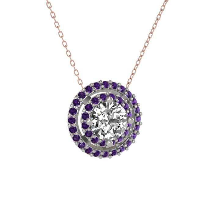 Swarovski ve ametist 18 ayar beyaz altın kolye (40 cm rose altın rolo zincir)