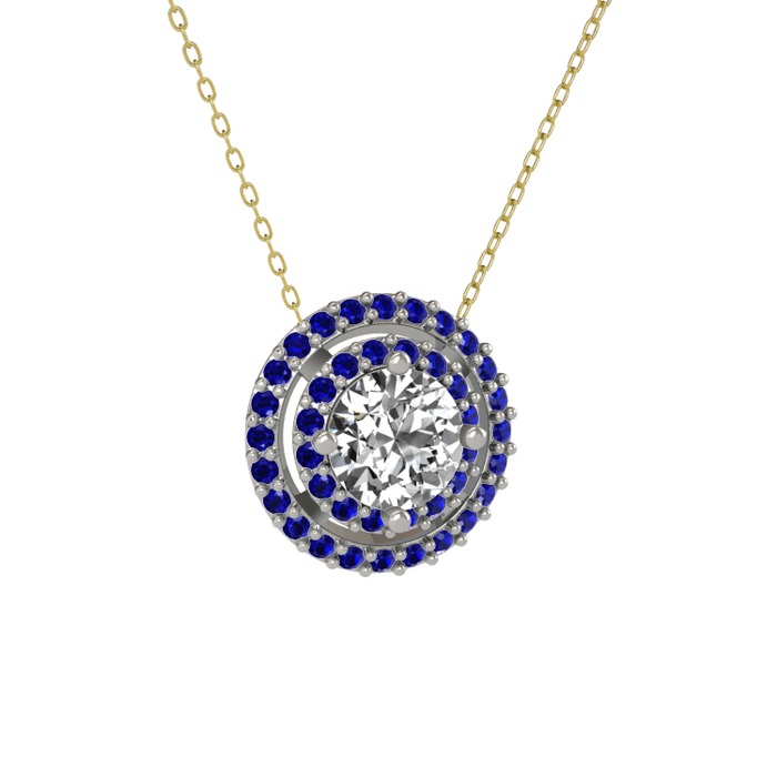 Swarovski ve lab safir 925 ayar gümüş kolye (40 cm gümüş rolo zincir)