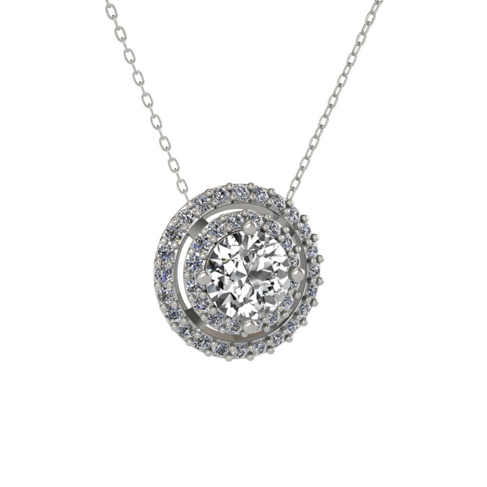 Swarovski ve pırlanta 925 ayar gümüş kolye (0.351 karat, 40 cm beyaz altın rolo zincir)