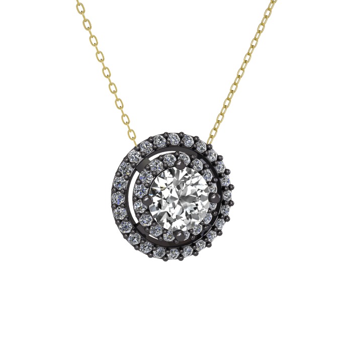 Swarovski ve pırlanta 925 ayar siyah rodyum kaplama gümüş kolye (0.351 karat, 40 cm altın rolo zincir)