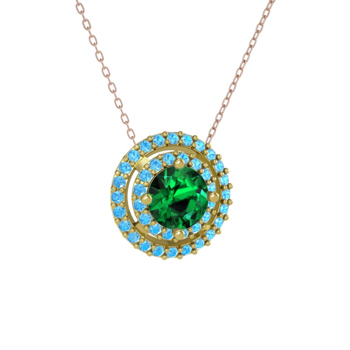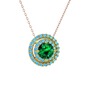 Yeşil kuvars ve akuamarin 14 ayar altın kolye (40 cm rose altın rolo zincir)