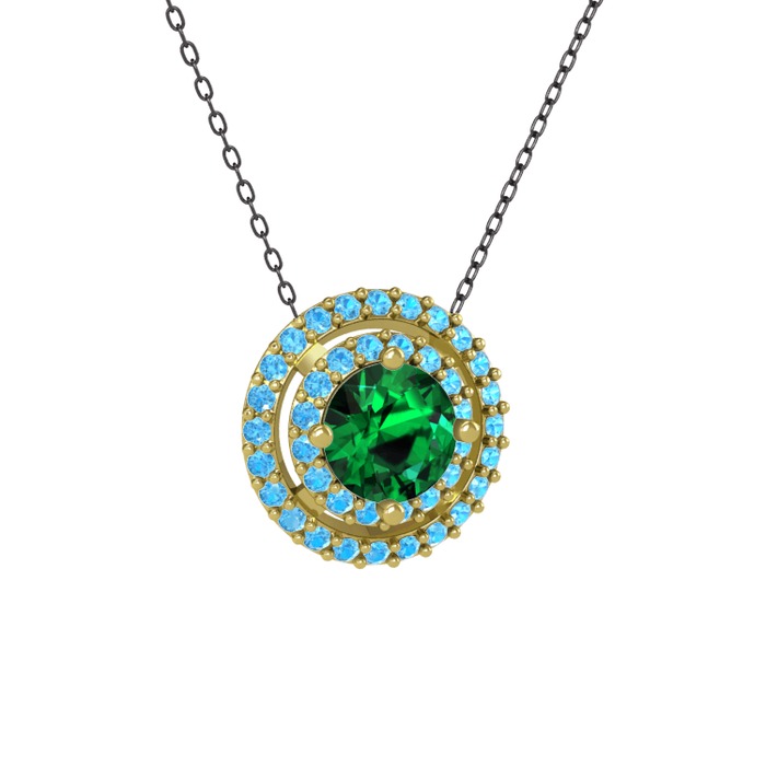 Yeşil kuvars ve akuamarin 18 ayar altın kolye (40 cm gümüş rolo zincir)