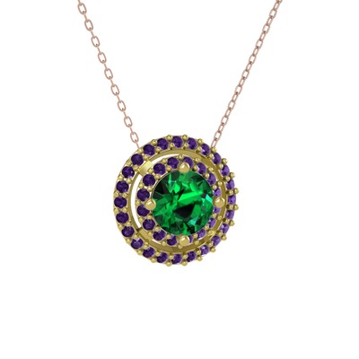 Yeşil kuvars ve ametist 14 ayar altın kolye (40 cm rose altın rolo zincir)