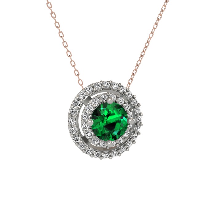 Yeşil kuvars ve beyaz zirkon 8 ayar beyaz altın kolye (40 cm rose altın rolo zincir)