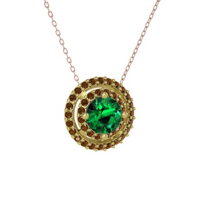 Yeşil kuvars ve dumanlı kuvars 14 ayar altın kolye (40 cm gümüş rolo zincir)