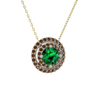 Yeşil kuvars ve dumanlı kuvars 8 ayar beyaz altın kolye (40 cm altın rolo zincir)
