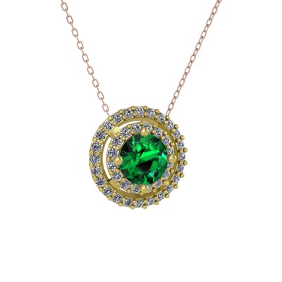 Yeşil kuvars ve pırlanta 18 ayar altın kolye (0.351 karat, 40 cm rose altın rolo zincir)