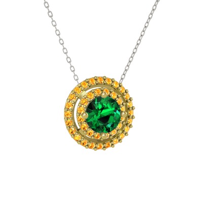 Yeşil kuvars ve sitrin 8 ayar altın kolye (40 cm gümüş rolo zincir)
