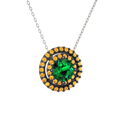Yeşil kuvars ve sitrin 925 ayar siyah rodyum kaplama gümüş kolye (40 cm beyaz altın rolo zincir)