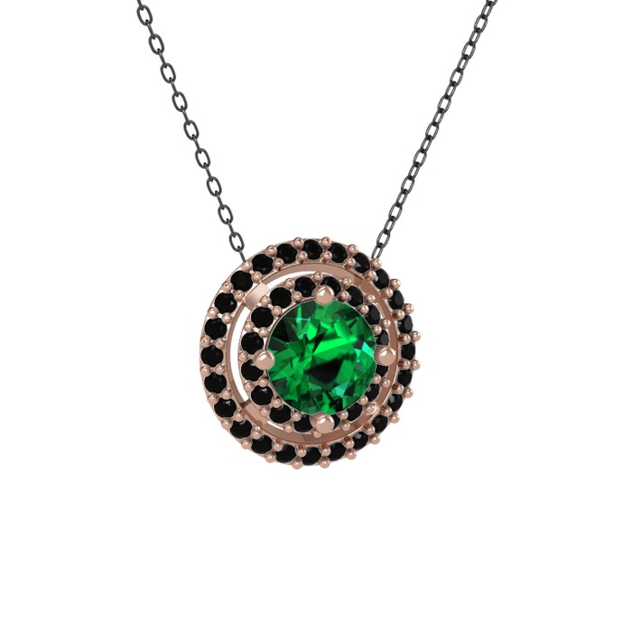 Yeşil kuvars ve siyah zirkon 14 ayar rose altın kolye (40 cm gümüş rolo zincir)