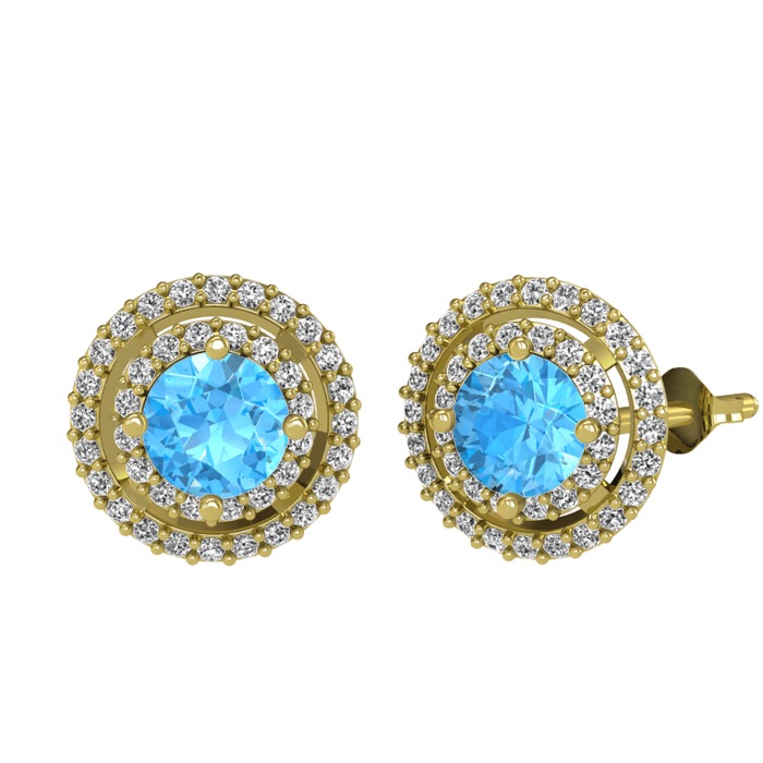 Akuamarin ve beyaz zirkon 18 ayar altın küpe
